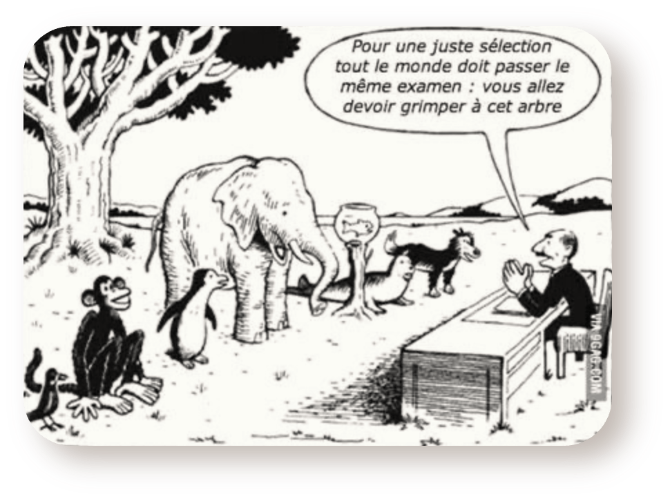 Si tu demandes à un poisson rouge de grimper aux arbres, il se sentira minable toute sa vie.